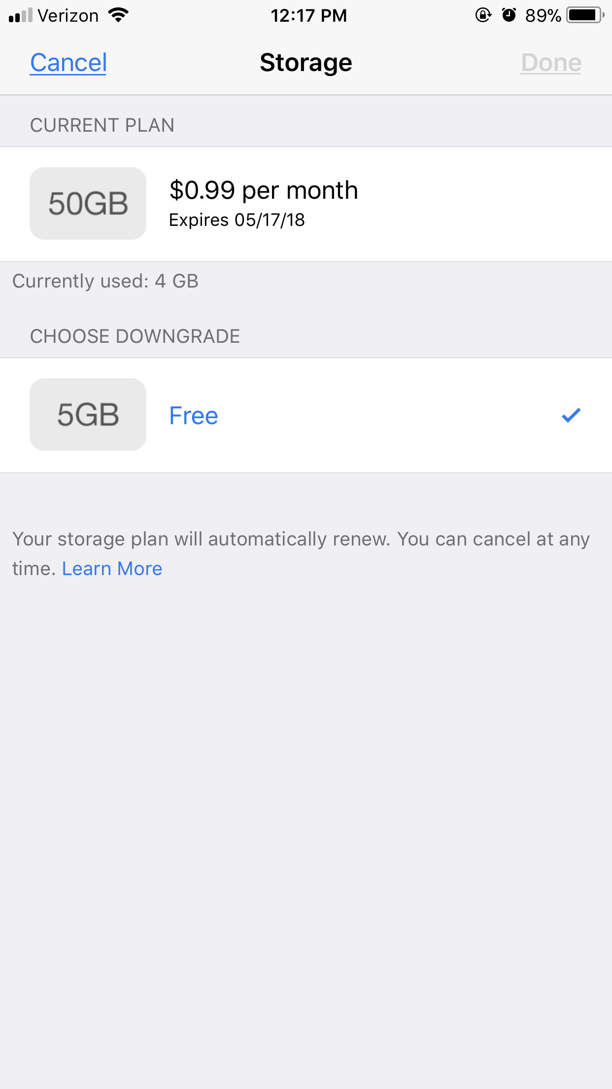 If you ve only got a single ios device that you use and you don t take many photos or videos the free storage tier should be enough for you.