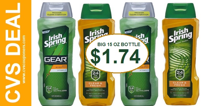 Now through 8 22 cvs has irish spring body wash 15 18 oz.